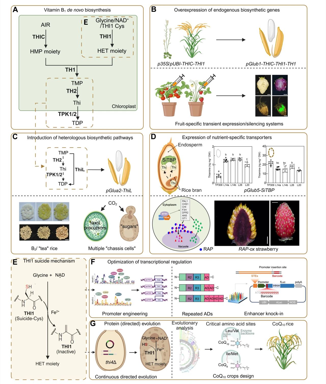 A recent mini-review published in theJournal of Integrative Plant Biology(IF 11.4, plant journal ranking 12/487 in 2022) by Associate Researcher Dr. Kai Wang and Professor Zhongchi Liu from the Faculty of Synthetic Biology and the Institute of Emerging Agricultural Technology at Shenzhen University of Advanced Technology systematically outlines next-generation strategies for plant-based nutritional enhancement guided by synthetic biology. Using vitamin B1 (thiamine) as a model, the review proposes five core strategies that promise to reshape future crop biofortification:
