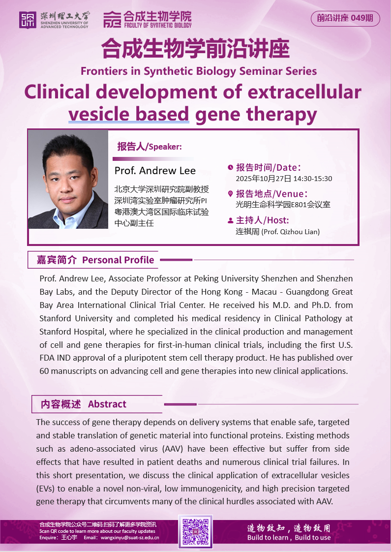 学术讲座(第49期)Clinical development of extracellular vesicle based gene therapy