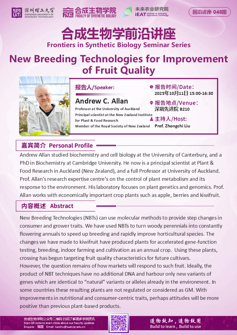 学术讲座(第48期)New Breeding Technologies for Improvement of Fruit Quality